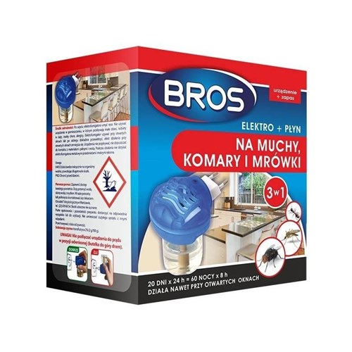 z płynem o szerokim spektrum działania, do zwalczania much, komarów i mrówek.