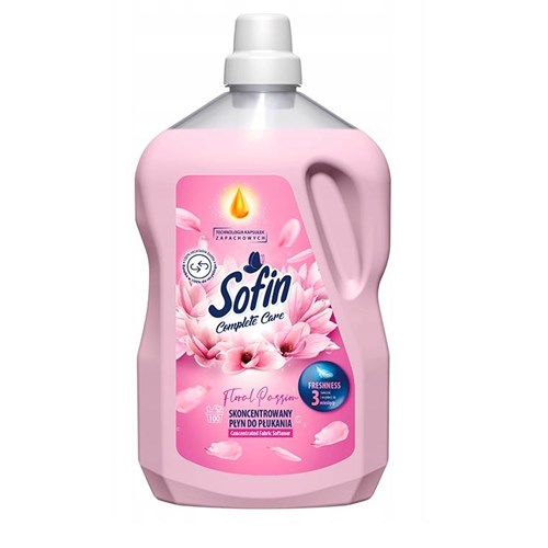 Skoncentrowany płyn do płukania tkanin Sofin Freshness o zapachu Floral Passion dba o kolory i tkaniny Twoich ubrań.