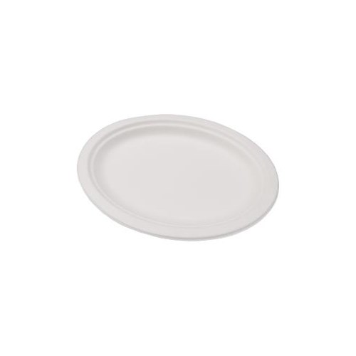 Talerz owalny wykonany z trzciny cukrowej przypominającej papier, wymiary 26cm na 19cm. Idealny w lokalach gastronomicznych, imprezach plenerowych. Produkt dla klientów ceniących sobie ekologie.