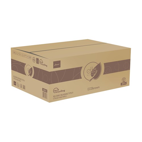 Makulaturowy, dwuwarstwowy i klejony ręcznik składany do użytku profesjonalnego w pomieszczeniach o zwiększonym natężeniu użytkowania; ręcznik z unikatowym wzorem gofrowania.