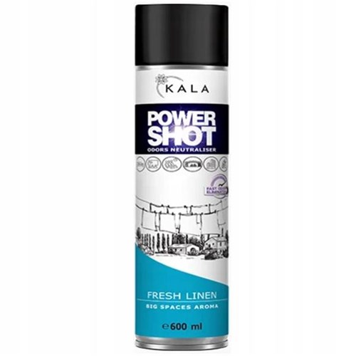 Neutralizator nieprzyjemnych zapachów, odświeżacz Kala POWER SHOT zapach FRESH LINEN (świeże pranie) 600 ml to zapach nieskazitelnej czystości, prania, które właśnie zostało rozwieszone do wysuszenia na słonecznej polanie. Doskonale sprawdzi się wszędzie, gdzie chcemy podkreślić i uwydatnić czystość i higienę.