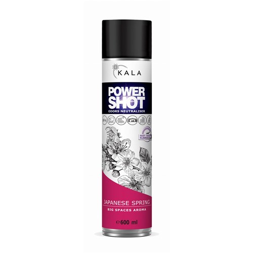 Neutralizator nieprzyjemnych zapachów, aromatyzer, odświeżacz Kala POWER SHOT zapach JAPANESE SPRING (600 ml) to zniewalający, zapach kwitnącej wiśni połączony z nutą budzących się do życia drzew oraz rozkwitających wiosennych kwiatów, pobudzi zmysły i doda wiosennej życiowej energii. Romantyczna naturalna nuta zapachowa w perfumowanym wydaniu.